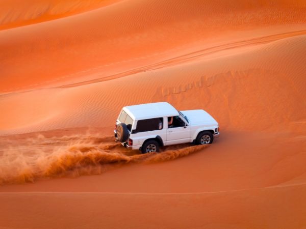 Tyre type: Off-road tyres have deeper patterns and stronger sidewalls for better traction on soft sand. Reducing tyre pressure before entering the desert also helps prevent sinking.
